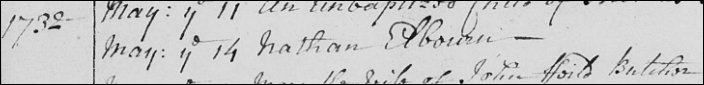 1732 -- Nathaniel was buried in 1732 in Bovingdon, Hertfordshire, England.