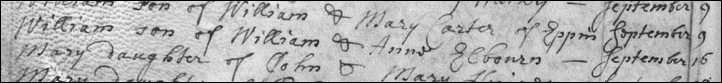 B.1 Mary Elbourn christened on 16 May 1697 in Bovingdon, Hertfordshire, England, dau. of Nathaniel.