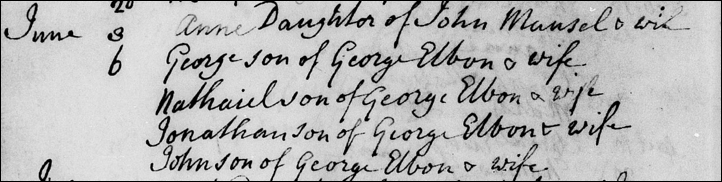 1.3 Nathaniel Elbon, christened 19 Jul 1722 in Codicote,