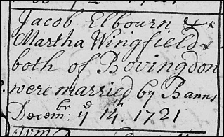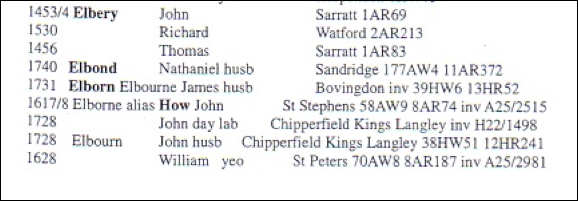 C.4 Thomas Elbourne, b. 33 Jan 1726 in Abbots Langley, Hertfordshire, England, m. Elizabeth ca. 1750. Thomas is probably the brother of Nathan Elbourn who m. Elizabeth, as they were both living in Harpenden ca. 1750. He may also have been the brother of George as they live at the same time in Abbots Langley, Hertfordshire, England.