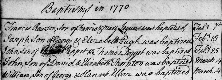 C.6 Sarah Ellbourn, christened 30 Jan 1725/1726 in St. MaryÕs, Watford, Hertforeshire, England, dau. of Thomas and Hannah Ellbourn.