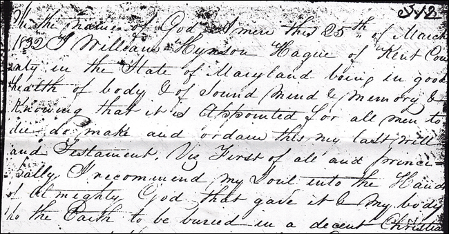 1832 Jun 18 – Elizabeth HagueÕs father died in Kent Co., MD.