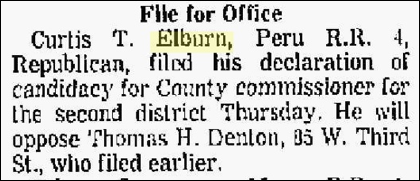 The following article is from the Kokomo Tribune, Saturday, 2 Mar 1968. He lost the candidacy with the least amount of votes.