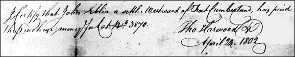 Because John Elbin (1)Õs son, John Elbin (2) was born at the earliest in 1775 as he was age 26-44 in the 1820 census; therefore, by 1790 he was 14 and too young to receive Lot #3870; therefore, we are confident that this John was John (1).