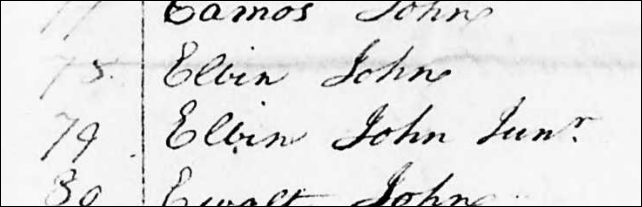 The 1850 census – John Elbin (2) died in 1845 before the 1850 census. Therefore, by 1845, John (1), John (2), and John (3) had died.