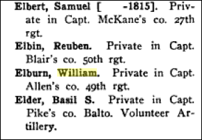 Elbin is found on p. 278 during the War of 1812 when he was ca. 32 years old.