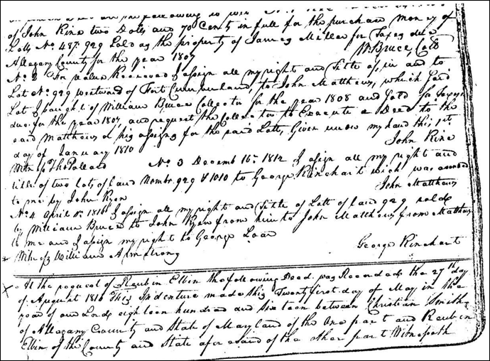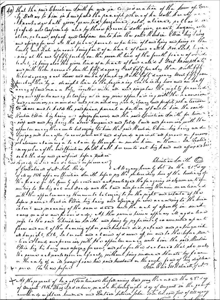 Land Deed dated 21 May 1816 in Allegany County, MD, from Christian Smith to Reuben Elbin.