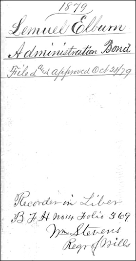 PAGE 1 IS JUST A COVER SHEET PUT ON THE PROBATE FILE WITH THE NAME, ESTATE NUMBER, DATE FILED, DATE OF DEATHÉ. IN THIS CASE, THEY HAVE: ELBURN. LEMUEL J, ESTATE NO Acc854, FILED 3-4-1876, DATE OF DEATH IS BLANK.