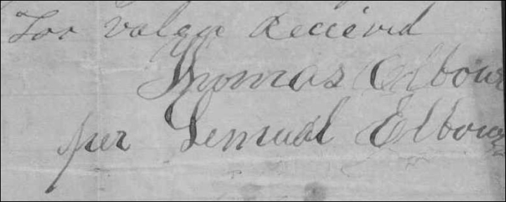 Then on Page 21, dated 4 Mar 1878 (before Lemuel died) is a note signed Òfor Lemuel Elbourn by Thomas ElbournÓ. Thomas was LemuelÕs eldest son, age 20 at the time he signed for his father.