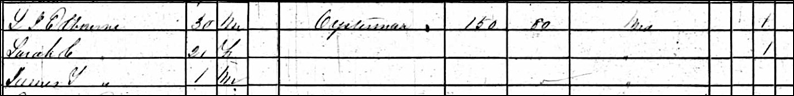 1860 census – Lemuel is listed as L. J. Elbourne, age 30, living with Sarah C. 21 and James T. age 1 in District 1, Kent, MD (here he was known as James Thomas).