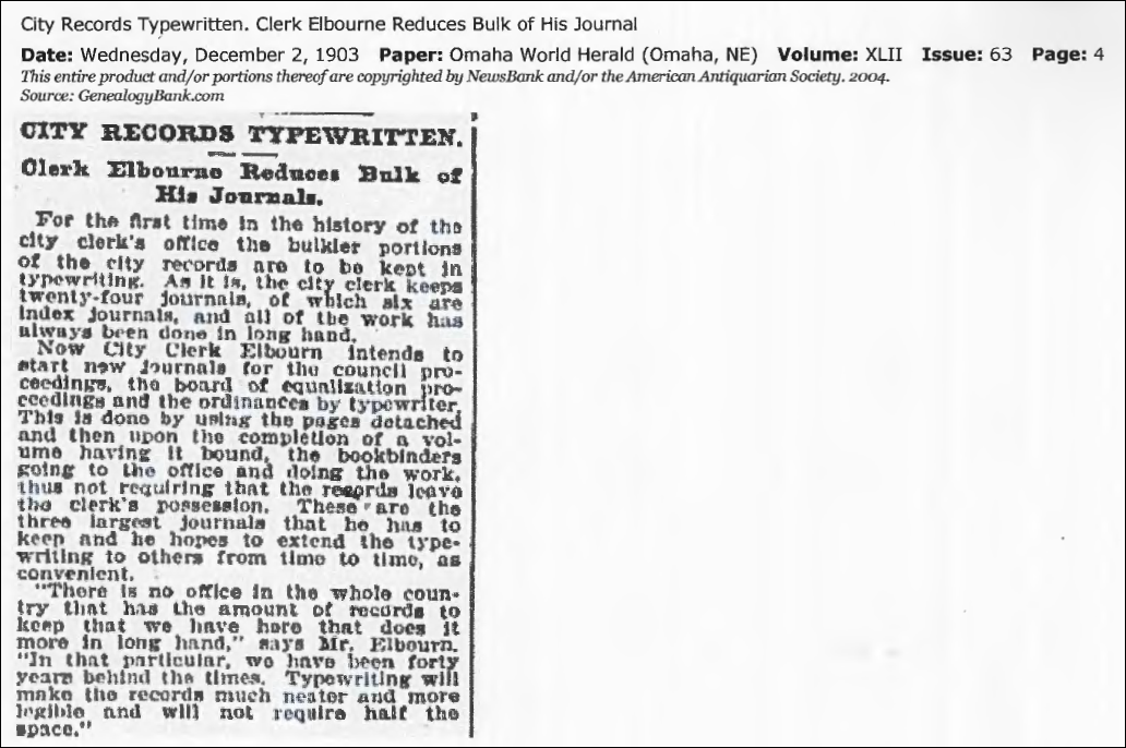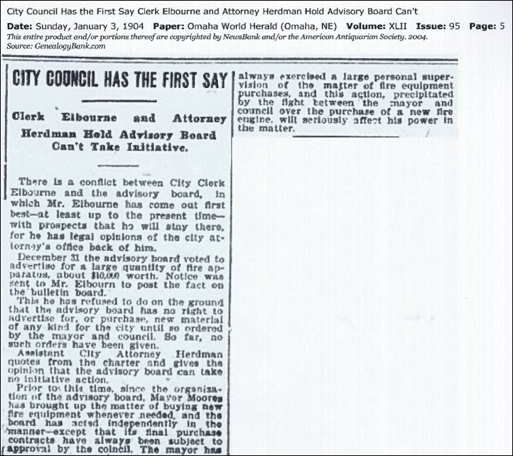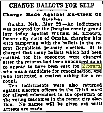 1901 – Charles A. Elbourne is listed in the 1901 City Directory of Omaha, NE, as a Conductor living at 3715 N Street, Omaha, NE.