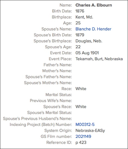 that Charles was 25 and Blanche was 22, and the groomÕs parents were L. Elbourne and Sarah Benton. Charles and Blanche