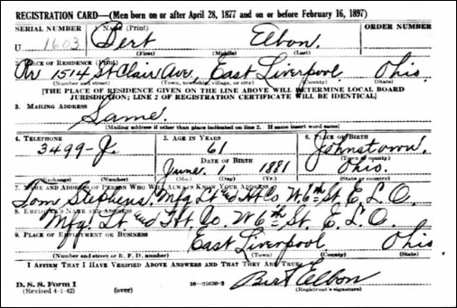 Randolph Co., WV, b. ca 1888 in Washington Co., PA. Clarence signed his WWII