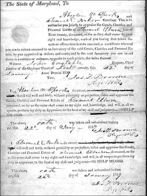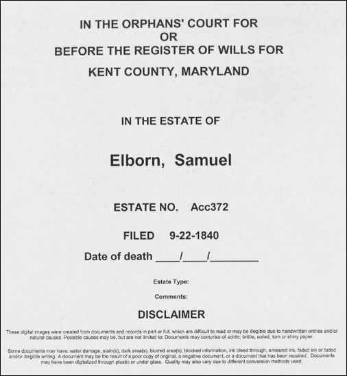 1840 Probate -- Samuel Elborn, Maryland, Probate