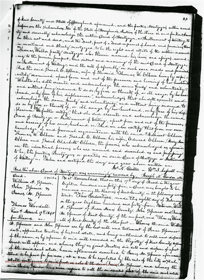 In the Deed of Mortgage Liber JNG 10 Folio 80, received 14 March 1845, Kent, Maryland, it says who owned the land prior to Samuel: