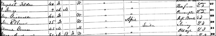 1870 census – Sarah and Spencer Leverton live in District 5, Kent, MD, with SarahÕs children by her first marriage: Samuel Byron 19 and William Byron 17. Also living with them is Sarah Hinikens 11, John Winchester 25, Anna Jones 30, Laura Jones 5, and Anne Jones 6/12 or half a year old (the Jones family was Black and Anna cooked for the family).