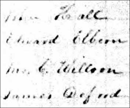 1848 – In the Kent News, May 20, 1848: Died – in Quaker Neck, on the 12th Instant, Mrs. Elburn. (i.e., 12 May 1848). This is the same exact format they used for Samuel. On Chancery Papers (below) dated 1849/11/23, where the Elburn family was foreclosing on the mortgage of ThomasÕ Purchase from Henry W. Archer, MillicentÕs name is not included with the names of all the children/heirs – because she had died. This information courtesy of Joan Elburn Farley on 6 Apr 2014. EdwardÕs mother, Millicent Elburn, died on 12 May 1848, when Edward was about 28 years old.