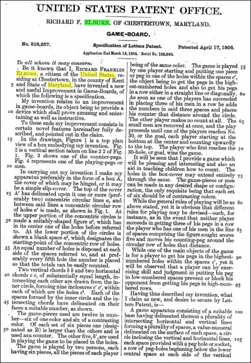 He is listed in the 1900 census of Chestertown, Kent Co., MD. In the 1910 census of Chestertown, he is living with his father, William S. Elburn age 71 and his brother Walter L. Elburn 37, and a boarder from Germany, Emma M. Bird, age 37. In the 1920 census of Chestertown, he was a boarder, single, living with various other people.