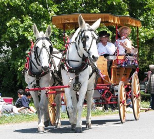 Perhaps that courtesy is the result of an envy for the Elburns’ mode of travel. After all, not many couples can be seen cruising down the highway in an Amish-style wagonette that is pulled by two mules named Kate and Ellen.