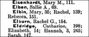 5.x Elizabeth Elbin, age 25, born 1825 in PA, d. 15 Dec 1891 in