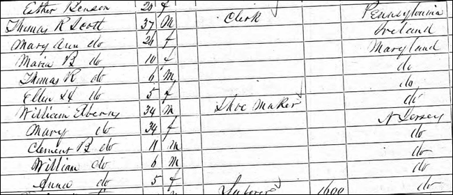William Elberry, 34, b. 1816 in MD, shoemaker, ClementÕs father