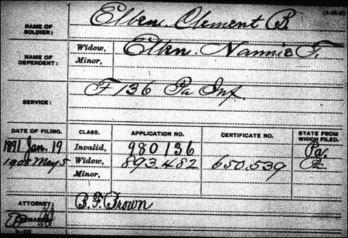 1891 Jan 19 – received a Civil War Pension from the Infantry Military Unit in Pennsylvania.