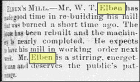 1872 Sep 8 – WilliamÕs father John filed his first of two wills and named his son William C. Elbin as administrator.
