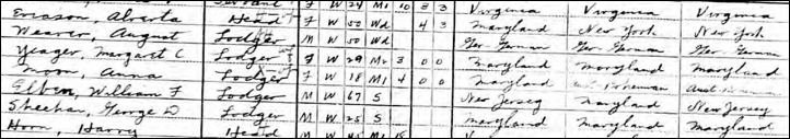 1880 census -- William and Cora may not have been well in 1880, as in the 1880 census, son Harry S ÒElbonnÓ, age 6, is living in that census with his brother ÒOsker Elbonn, age 9Ó and with the Harte family who were his grandparents, living in Dixon, Queen Anne, MD. Osker is also listed as a grandson, born in 1871, and as William and Susan married in 1870, he was also their son.