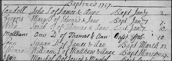 The fact that William married Sarah Fitzjohn on 31 Dec 1775 definitely fits in well, as William probably died during the Rev. War, leaving Sarah as a widow in the 1790 census of Kent Co., MD. Sarah Fitzjohn was born on 9 May 1757 to George and Anne Fitzjohn in Baldock, Hertfordshire, England. She was baptized on 23 Jul 1758 in Baldock. This fits precisely. Just knowing that both WilliamÕs and SarahÕs mothers were both named Anne, could indicate that they named a daughter Ann, and perhaps their sons would be William or George.