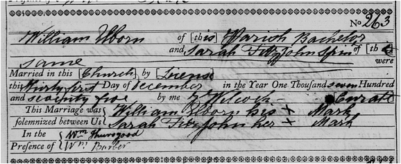 William m. Sarah Fitzjohn on 31 Dec 1775 in Baldock, Hertfordshire, England, at age 18.