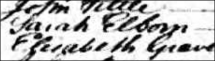 The AGBI (American Genealogical Biographical Index) determined that she was born in Maryland in 1750. Another thought would be that the ÒElbornÓ shown below could have been ÒElbonÓ where the ÒnÓ had 2 humps as in cursive writing.