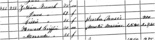 Jumping now to the 1860 Census, we have Zetham French (II) listed as 78 years of age, or being born about 1782. This is son of Zetham French who was born in 1745. Note: Lissie was born after death of Zetham II not his daughter; similar issues with Howard Griffin and Miranda Griffin, who is likely a Miranda French.