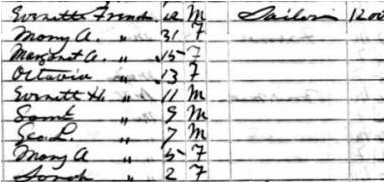 The 1860 Census seems to contradict this. Lois French of Stockton is listed as the head of the household at age 33 (agrees with her being born 1827), has a home worth $1200 and personal property valued at $1,000. With her are children, Evelyn French, age 7 (born about 1853) and Charles N. French, age 4 (Jan 1857) and Susan French, age 1 (born about 1859.) There is no date listed on the census form as to when the census-taker recorded the family's information. 1860 Census: Stockton, Waldo County, ME
