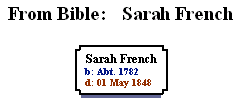 ZETHAM FRENCH II (ZETHAM) was born 5 Nov 1782, and died 20 Sep 1824. He married JANE H YOUNG. She was born 1792, and died 29 Aug 1874.
