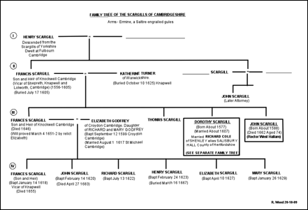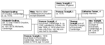 that married Frances Scargill III was baptised 12 September 1599 Croydon, Cambridge.