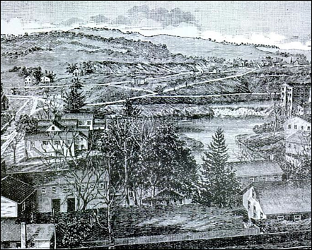 with the falls area of the Naugatuck River still the center of town