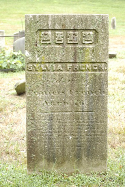Francis m2. Silvia Pritchard 1 Jul 1788 [7], who was b. 16 Feb 1768, dau. of David Pritchard. She d. 7 Dec 1844 age 76 in Derby, CT [16]. Sylvia died 7 Dec 1844 at age 76, widow of Francis French, photo taken by [61]. See http://www.oxfordpast.net/cem13146.html.