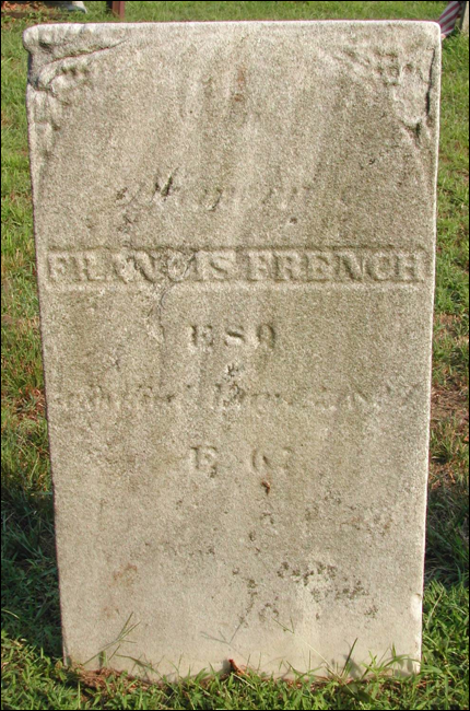 5.23* Henry/Harry French, b. 25 Oct 1791, d. 17 May 1860 age 68, m. 12 Oct 1811 to Harriet Peck [6] [7] [22].