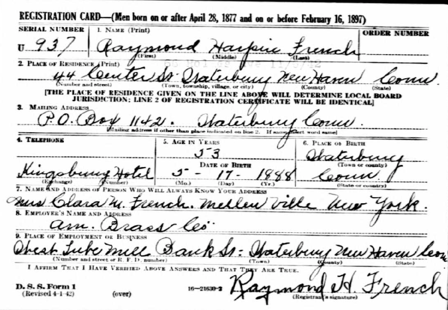 On his WWII Draft Registration Card, he shows he was born on 17 May 1888 in Waterbury, CT.