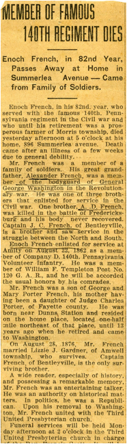 6.11 A. D. French, eldest, enlisted in the Eighth Regiment, Pennsylvania Reserves, and was killed at the battle of Fredericksburg during the Civil War.