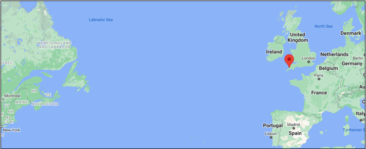 sons immigrated from Cornwall, England (shown by red marker) to Prince Edward