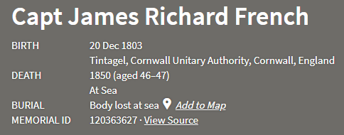 Wife of Capt. James French, per marker. James Richard French, born in Cornwall,