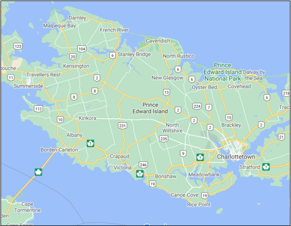 shore of Prince Edward Island, halfway between PEI’s largest cities of
