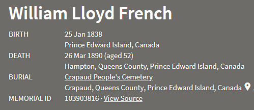 *William Lloyd French (b. 1838, Prince Edward Island ("PEI"), Canada;