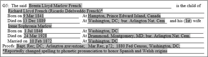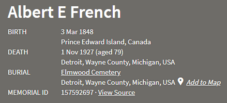 *Richard Lloyd French (b. 9 Mar 1844, PEI; m. Irene S. Marlow, 8 Feb 1877,