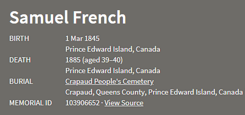 *Samuel French (b. 1845, PEI; d. 1885, PEI)