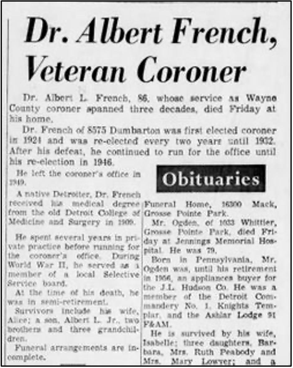 the Family Search system, died on 28 Dec 1878, in Detroit, Wayne, Michigan of
