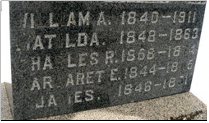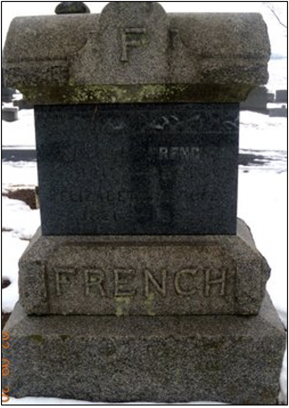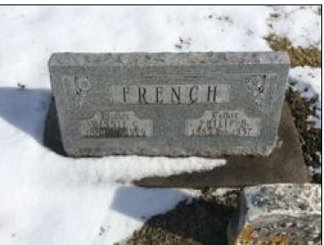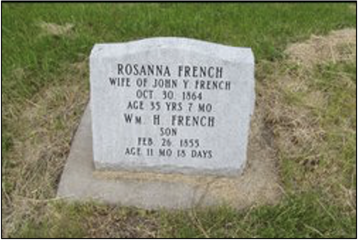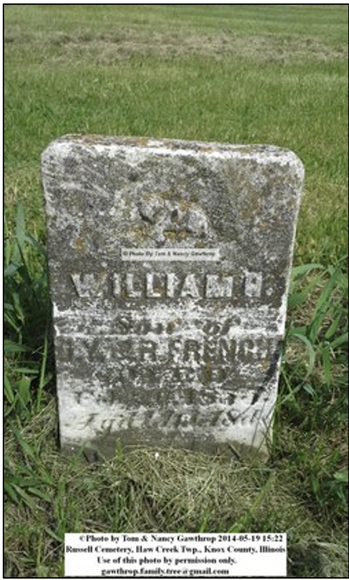 4.11 William Henry French [11], b. 18 Mar 1854 in Knox, IL, d. 26 Feb 1855, aged 11 months, in infancy, buried in the Russell Cemetery, Knox County, IL.