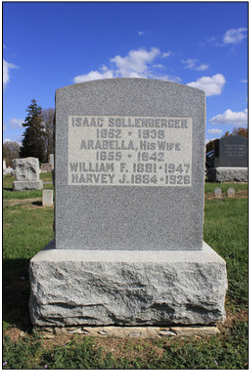 4.8 Arabella French [11], b. 30 Sep 1855 in Springfield, Delaware, PA, d. 23 Oct 1942 aged 87, buried in the Newville Cemetery, Newville, Cumberland, PA [41]. She m. Isaac Sollenberger (1852-1939) and had at least 2 children: William and Harvey. See https://www.findagrave.com/memorial/74459321/arabella-sollenberger.