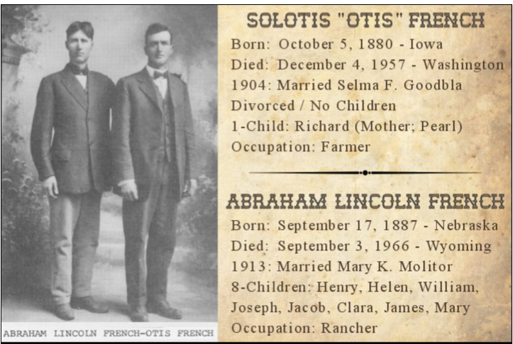 French, b. 5 Oct 1880 in Iowa, of Mitchel, SD, m. Selma F. Goodbla and divorced. Otis had